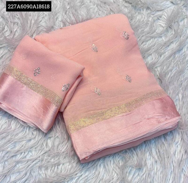 Fabric - Satin Patta Pure Viscose Georgette Saree With Fancy Sequins Work Fancy Square Butti all Over Saree & Satin Border With Fancy Sequince Embroderiy Work Blouse